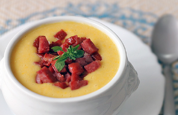 Numa panela, derreta a manteiga, acrescente a batata batida e os cubinhos de caldo de carne. Mexa a mistura até derreter os cubinhos. Acrescente o requeijão e mexa bem até derretê-lo.